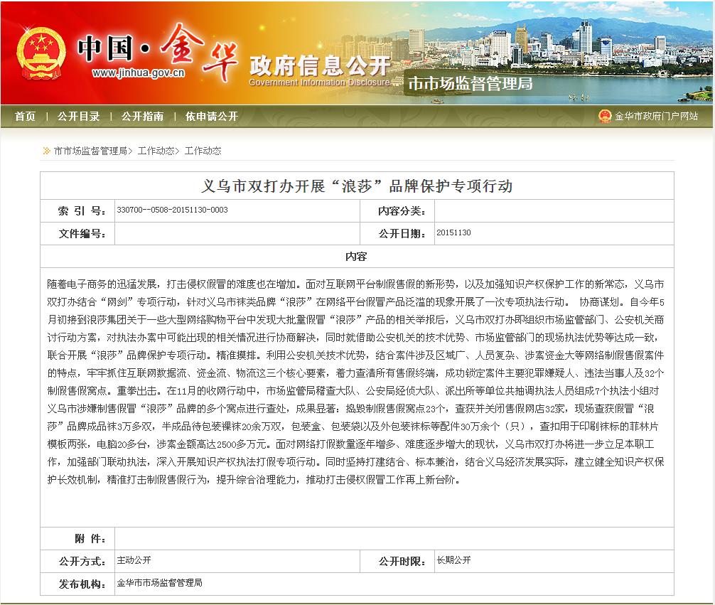 義烏市雙打辦開(kāi)展“浪莎”品牌保護(hù)專(zhuān)項(xiàng)行動(dòng)