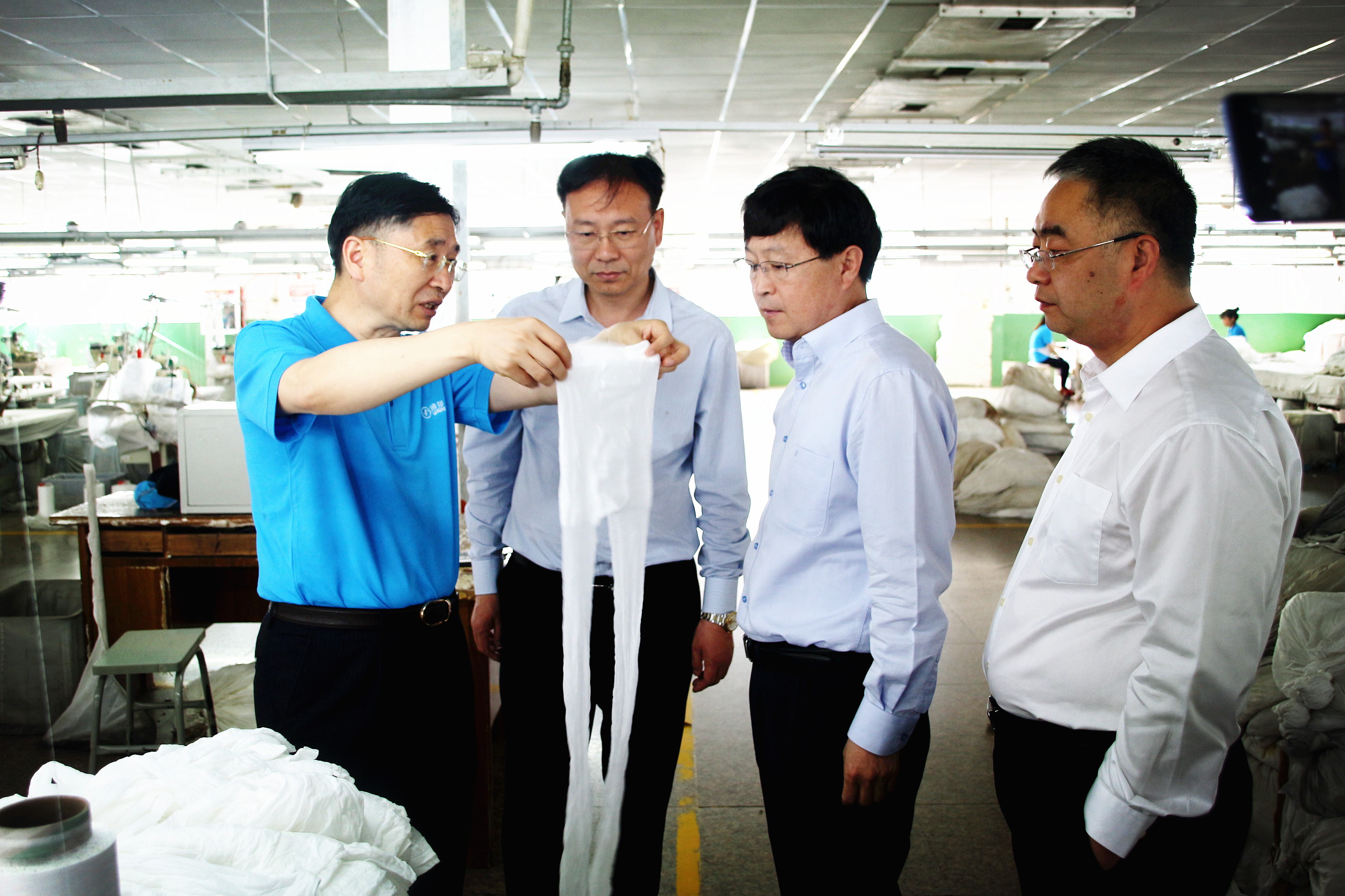 今日上午,吉林和龍市委書記金烈一行到浪莎考察指導。浪莎集團董事長陪同參觀了企業(yè)展示廳及車間。