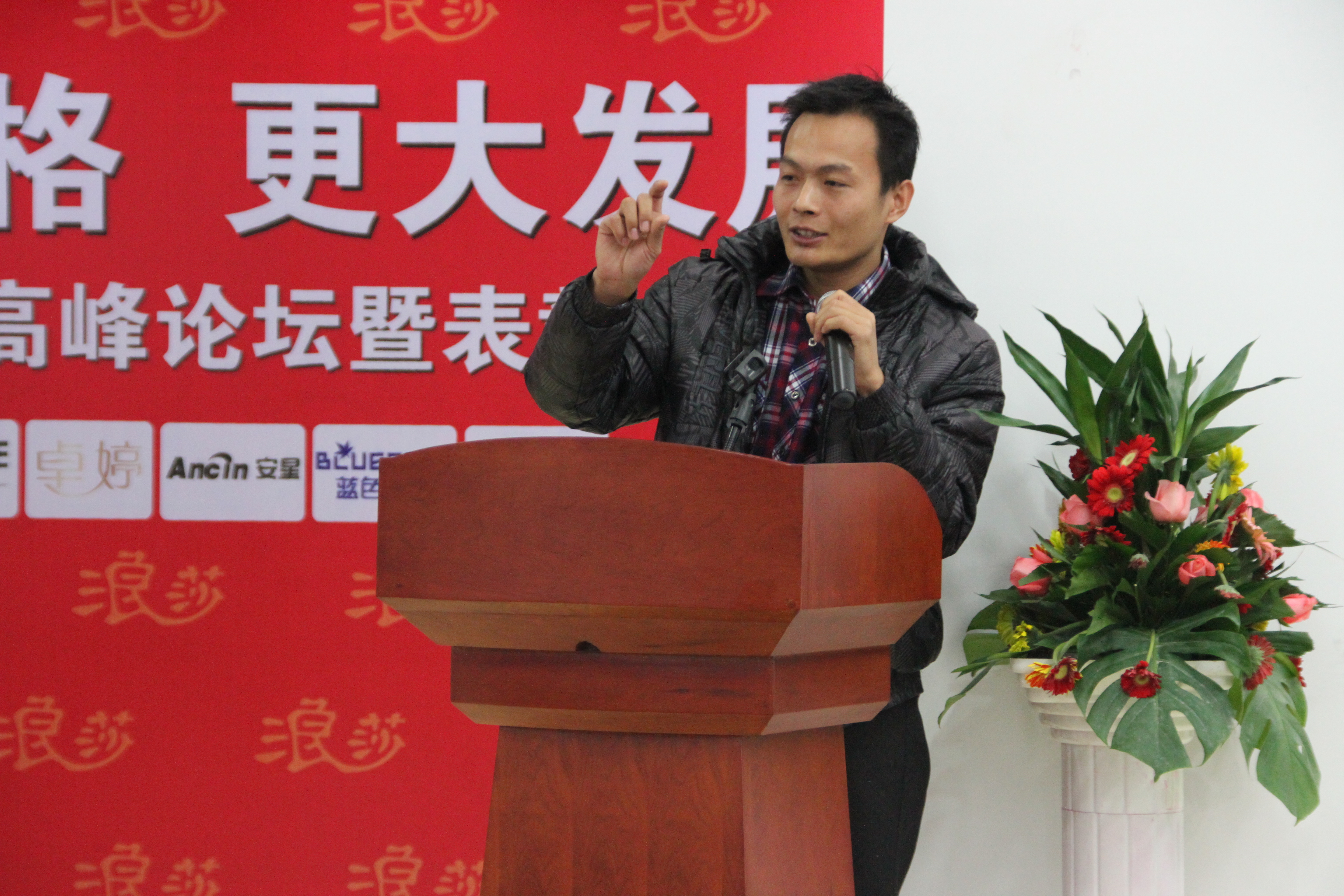 隨后的頒獎環節中,分別產生了新秀獎、營銷渠道創新獎,銷售狀元等十多個獎項,董事局領導為獲獎客戶頒獎。其中,新秀獎獲得者,一位江西的80后客戶感慨頗深,他大學畢業來義烏擺地攤創業,一直沒有出色業績,因為一次偶遇,得到了公司董事局總裁的指導,加入浪莎銷售隊伍,僅2年的時間開了4家專賣店,從一個農村小伙子變成了收入豐厚的老板。對此,他特別向支持和幫助他的浪莎董事局領導表示感謝,當他大聲喊出:“浪莎是我一生的事業,是我家人一生的事業”的時候,全場沸騰了!