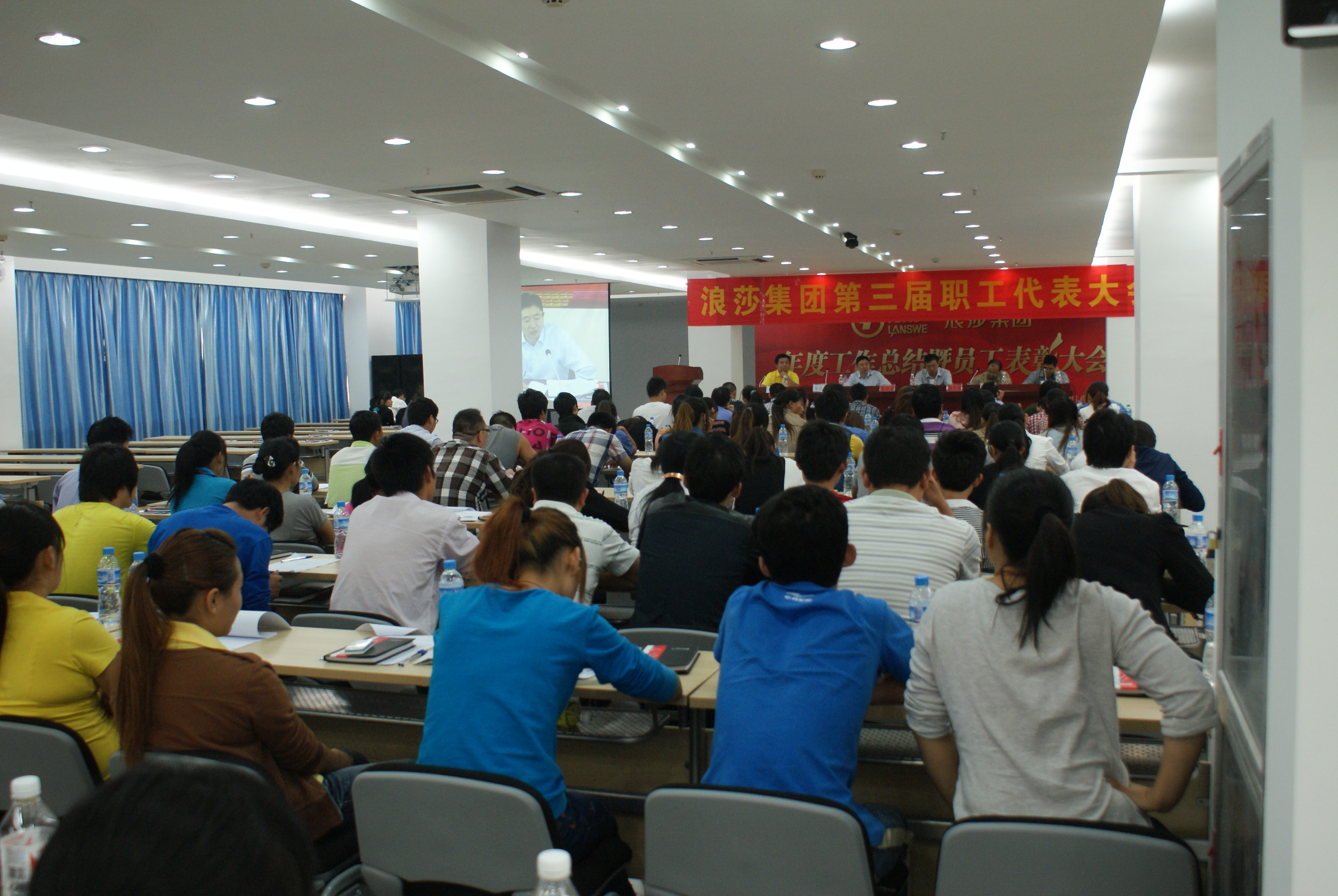 2012年10月21日浪莎集團第三屆職工代表大會在浪莎三期工業園隆重召開,會議明確了工會組織架構、審議通過了浪莎工會三屆一次代表大會決議,完成換屆選舉。