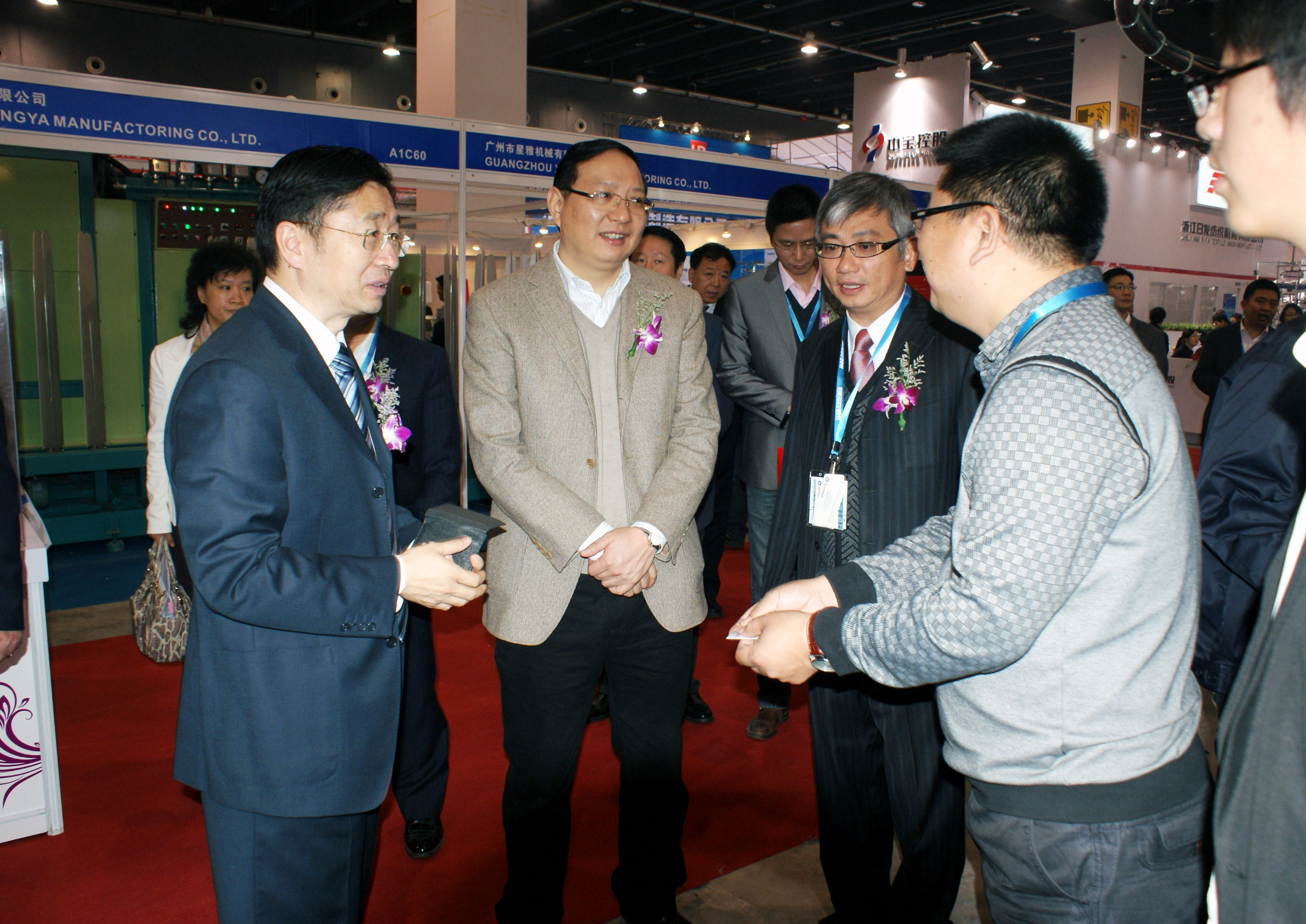 在結束簽約儀式后,翁榮金董事長陪同義烏市副市長季金甫參觀了襪機博覽會各展位。本屆襪機博覽會參展方包括國內知名大學成果展示、襪機制造商產品展示、襪業企業產品展示。