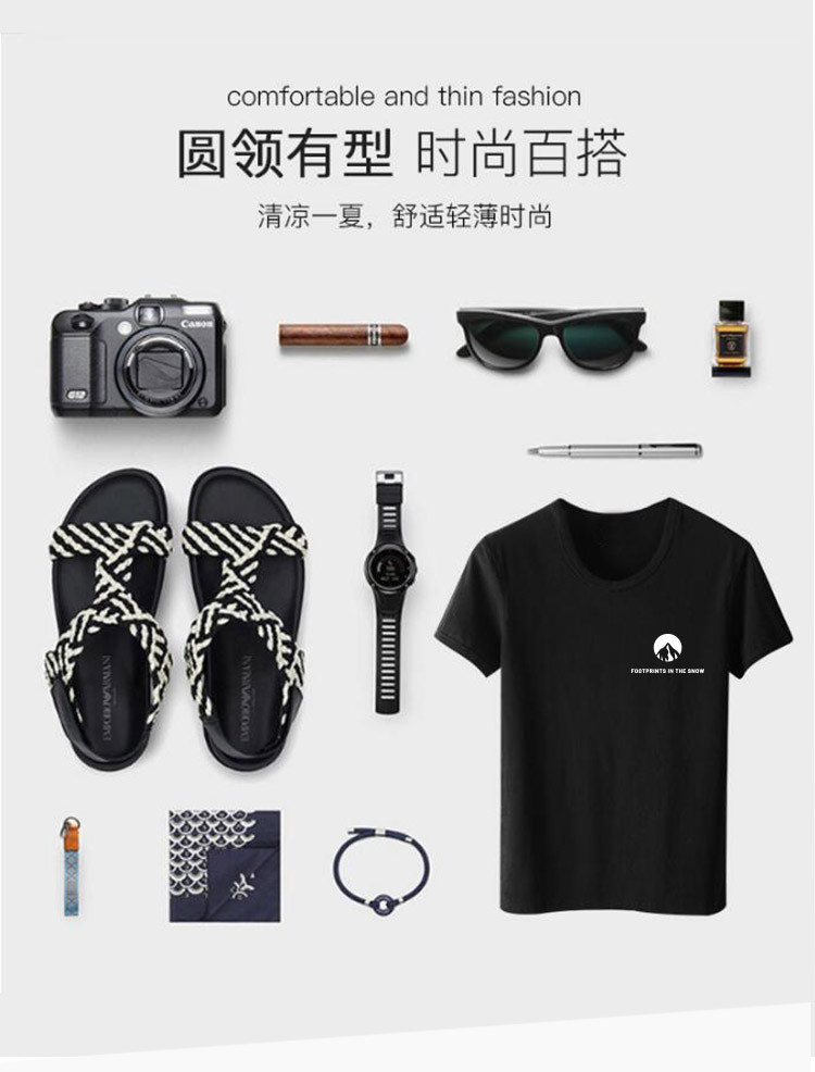 【100%純棉】2021春季爆款t恤男士韓版雪山印花短袖圓領(lǐng)T恤男