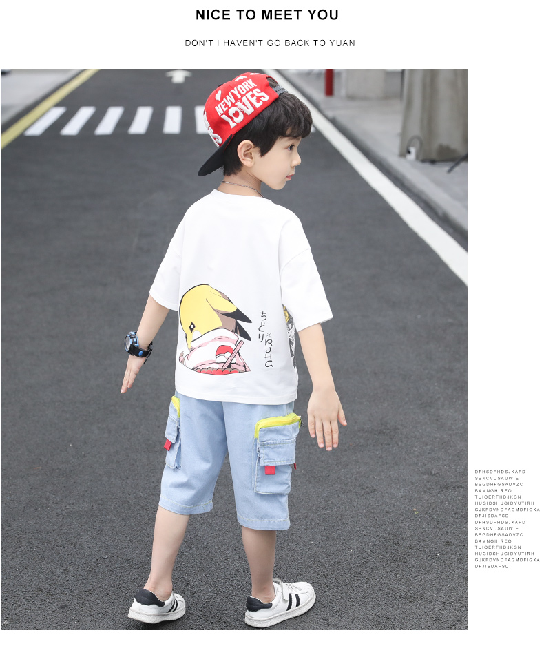 浪莎童裝兒童男童短袖套裝2021新款夏裝中大童兩件套寶寶卡通套裝