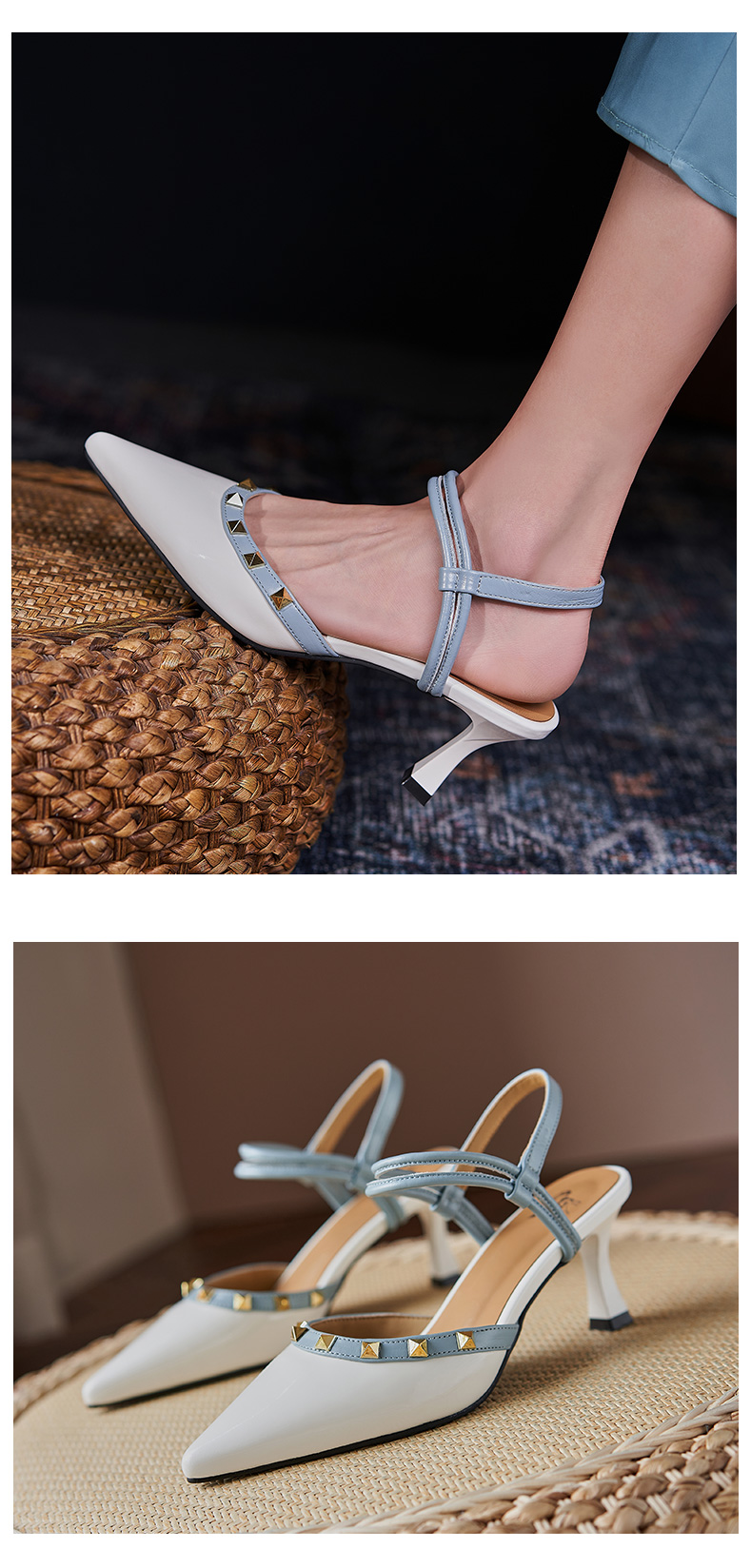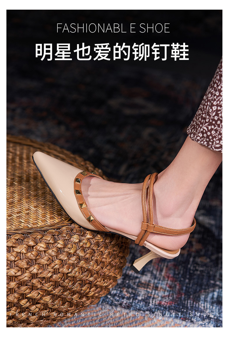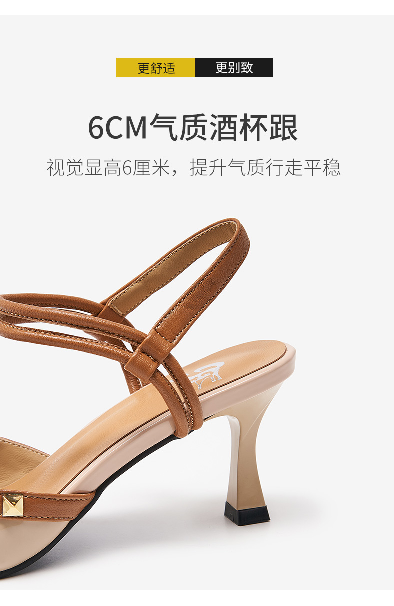 包頭涼鞋女2021新款鞋子女夏季高跟鞋后空一字帶細跟真皮時裝涼鞋