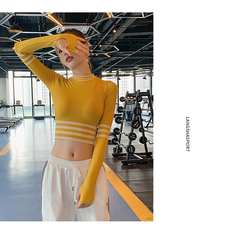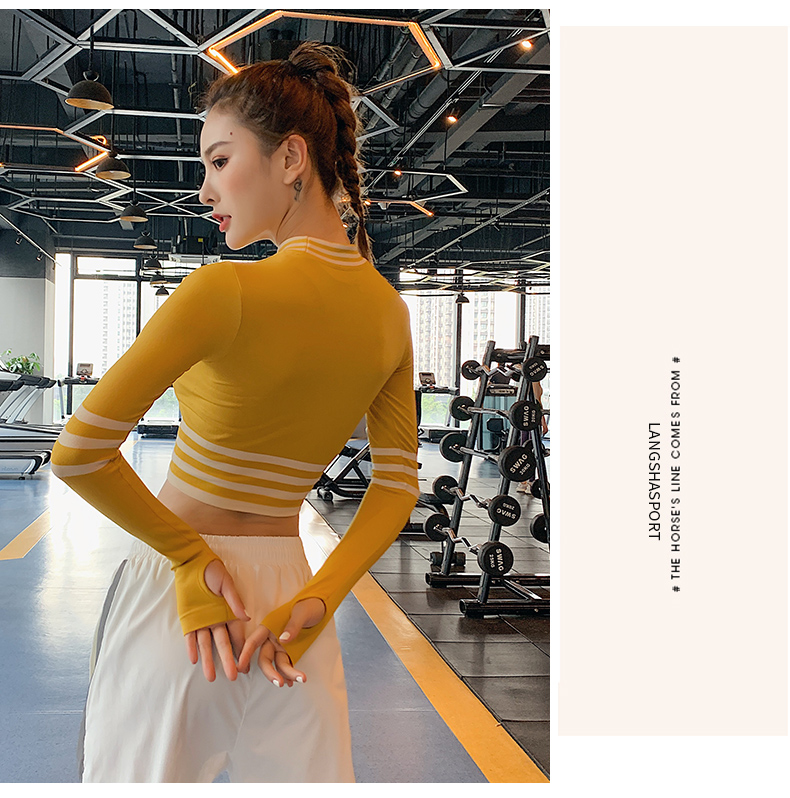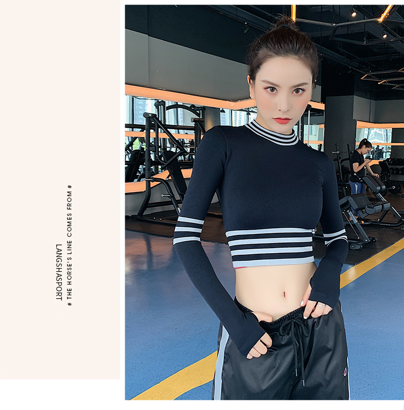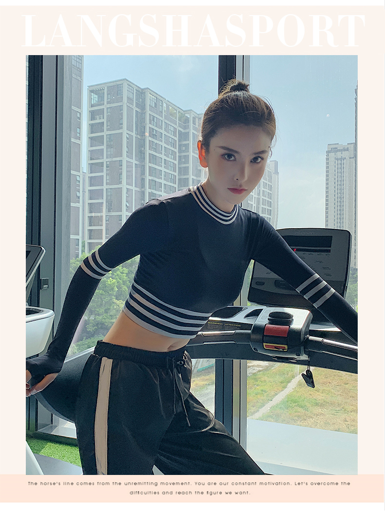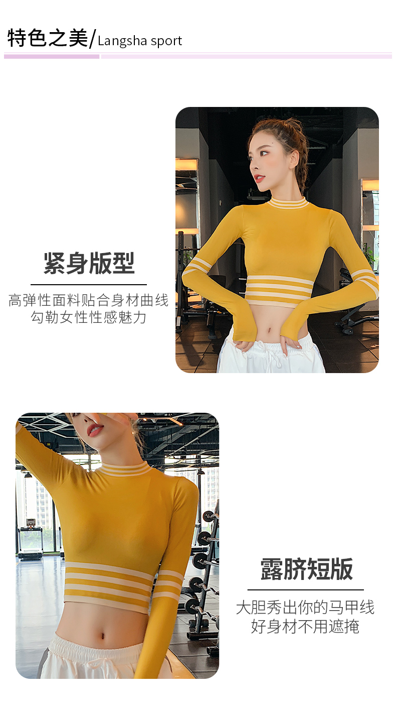 浪莎長袖健身衣女露臍性感運(yùn)動T恤速干緊身春秋跑步瑜伽服上衣