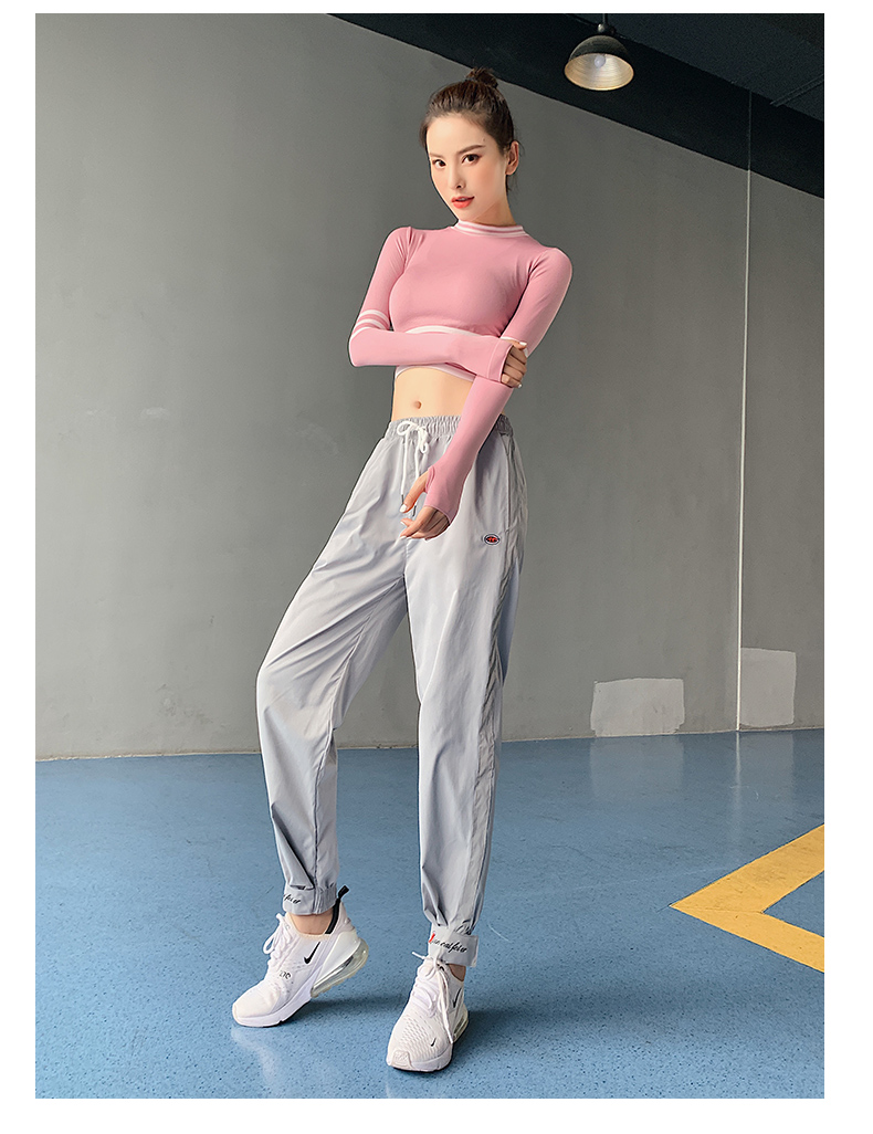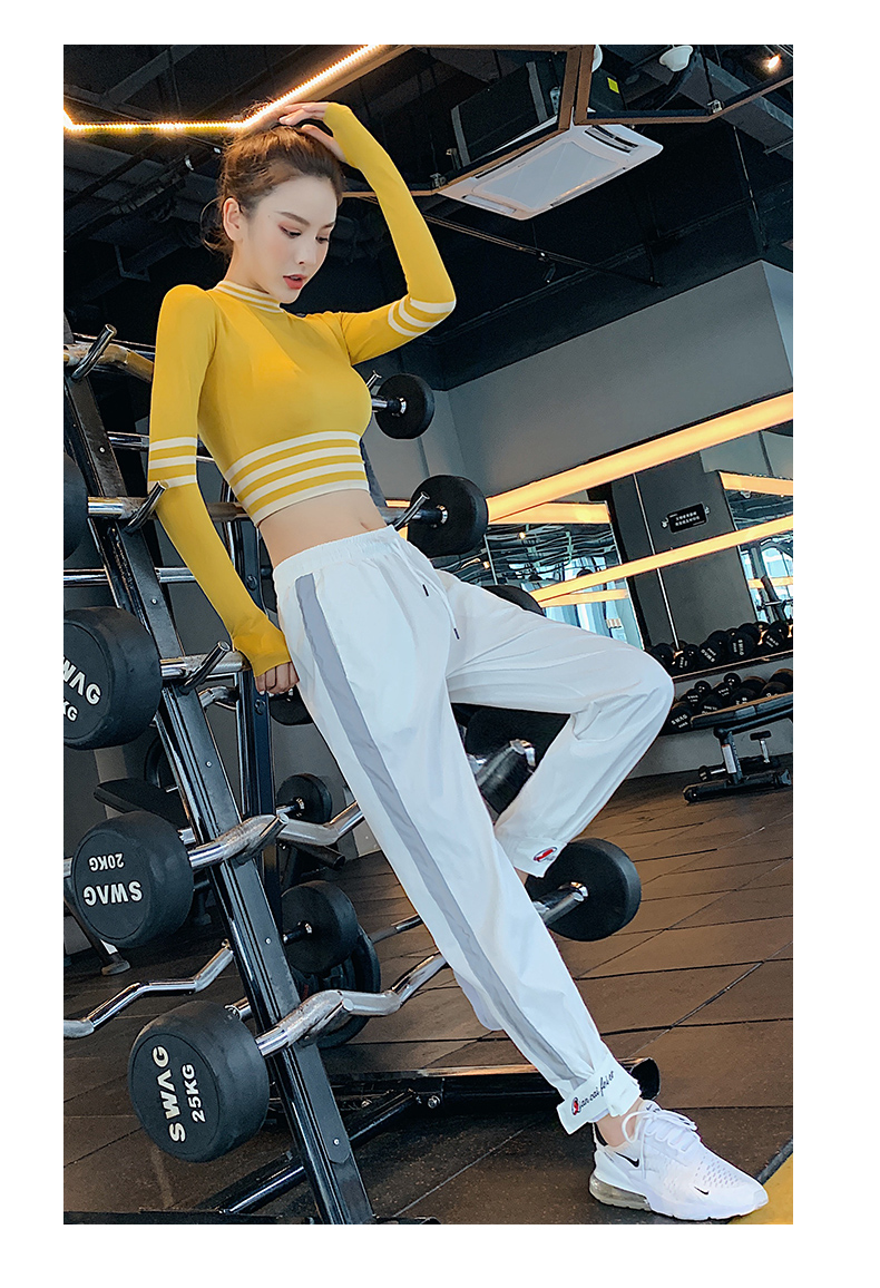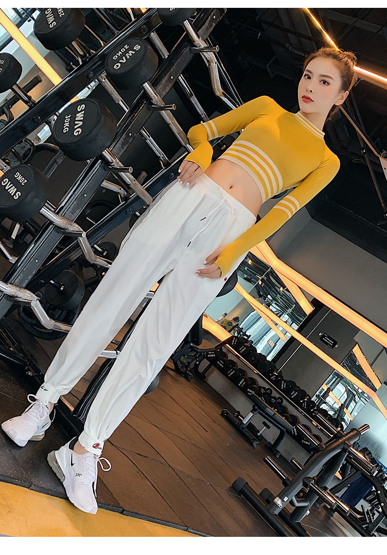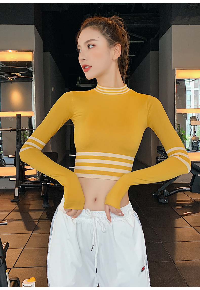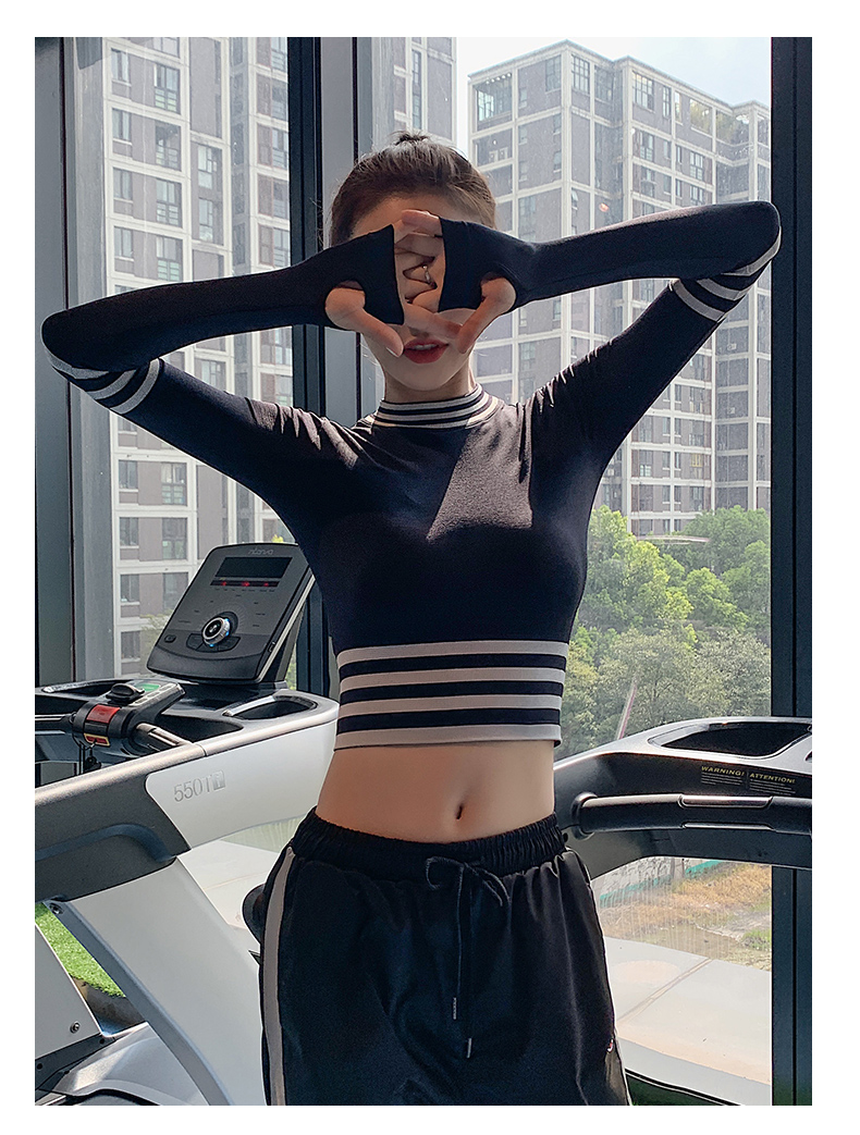 浪莎長袖健身衣女露臍性感運(yùn)動T恤速干緊身春秋跑步瑜伽服上衣