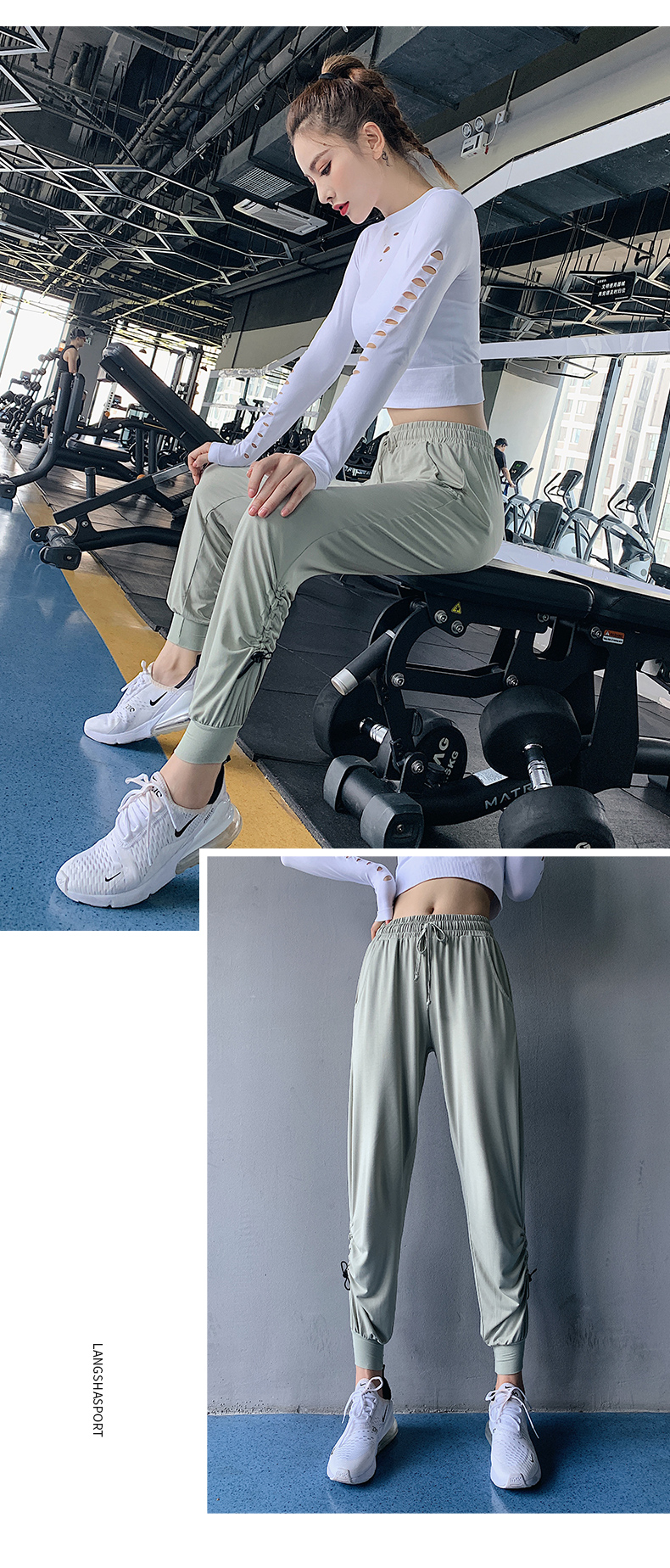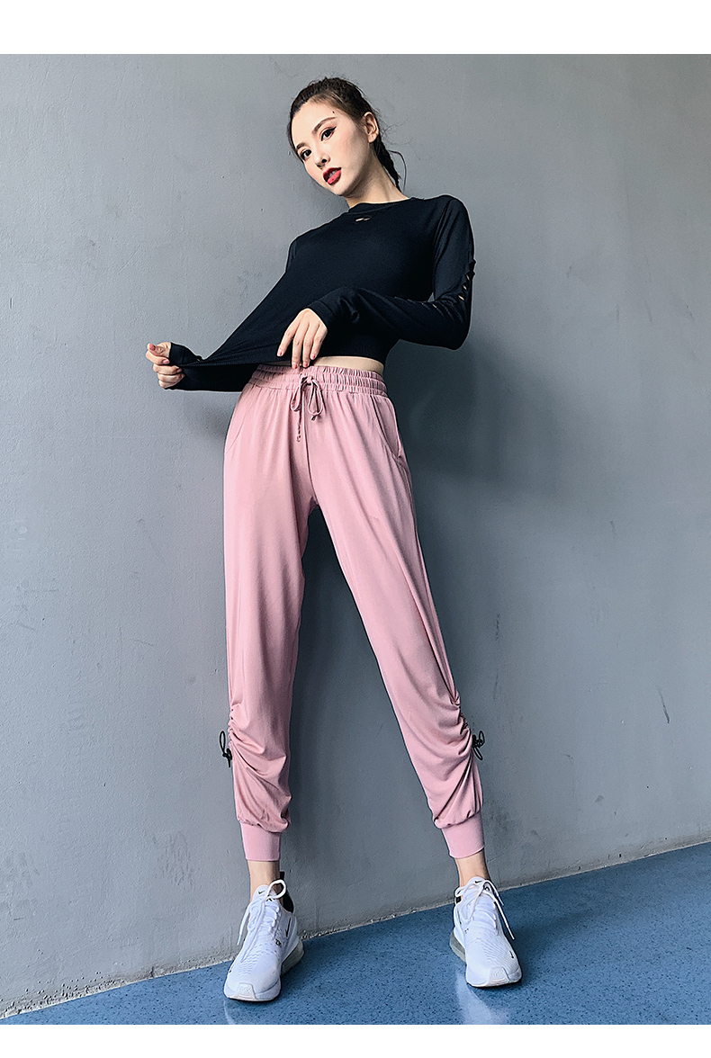 特價(jià)浪莎健身褲女寬松束腳收口跑步舞蹈薄款速干高腰瑜伽褲運(yùn)動(dòng)褲