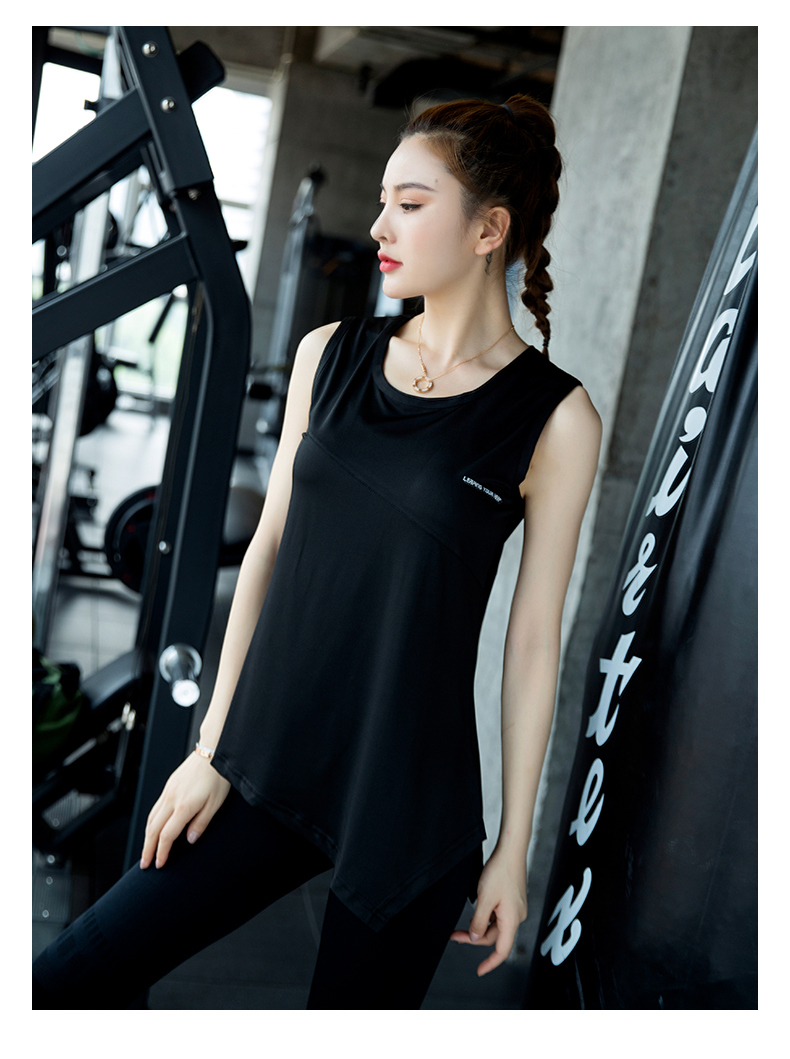 浪莎運(yùn)動(dòng)背心女寬松外穿瑜伽上衣無袖速干T恤跑步時(shí)尚長(zhǎng)健身罩衫