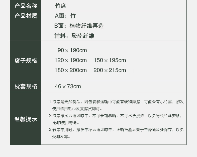 夏季碳化竹席可折疊席子單雙人宿舍1.5米1.8m床空調(diào)涼席雙面可用