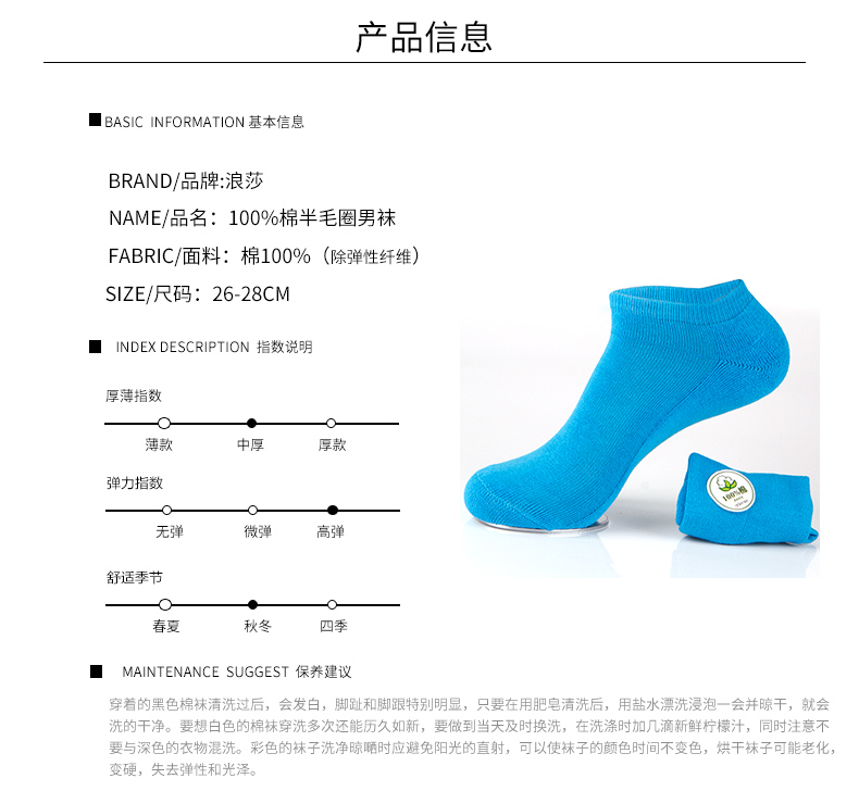 浪莎襪子 男士毛巾底船襪 純棉加厚地板襪運(yùn)動短襪綠色