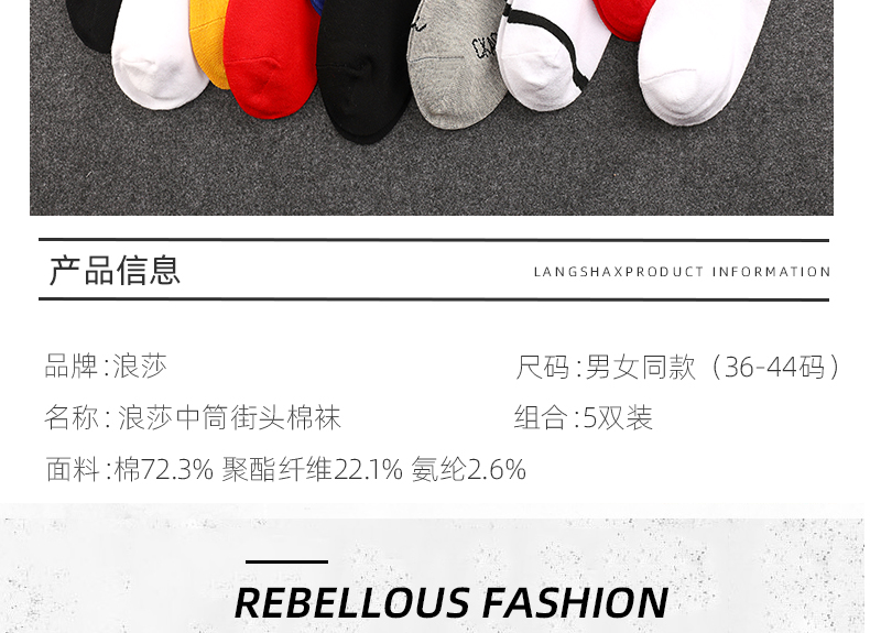浪莎襪子男中筒襪歐美ins潮春夏季防臭女長筒襪籃球高幫運(yùn)動(dòng)棉襪