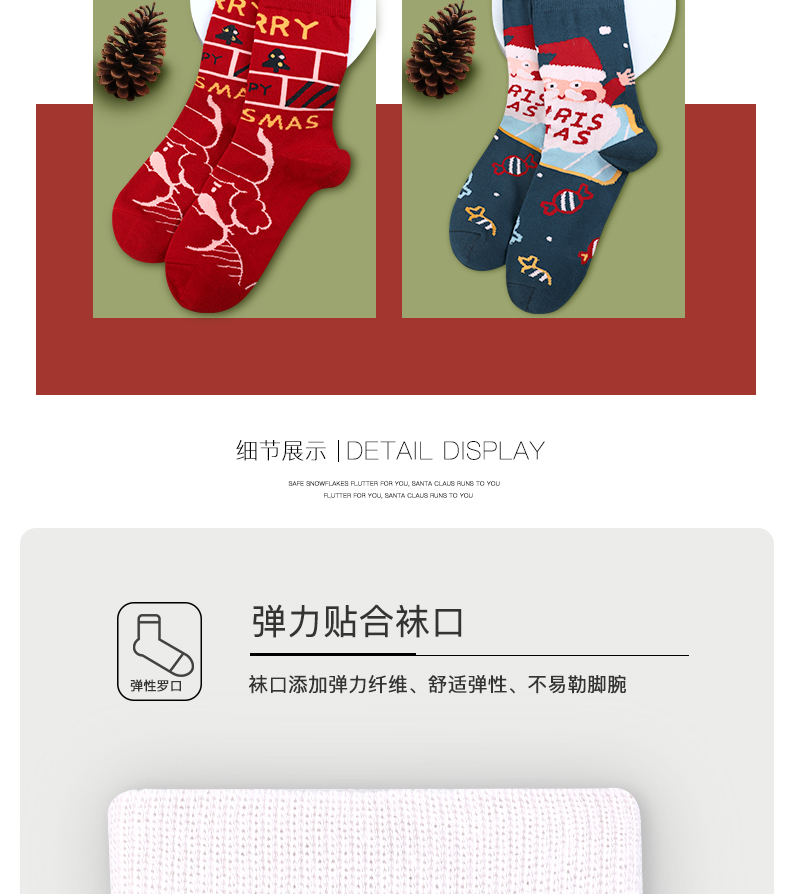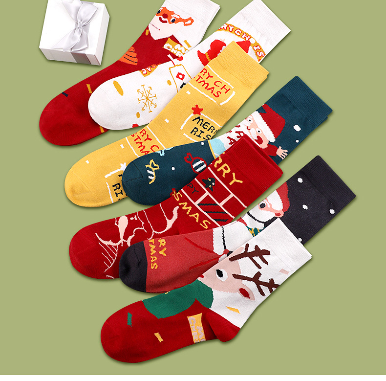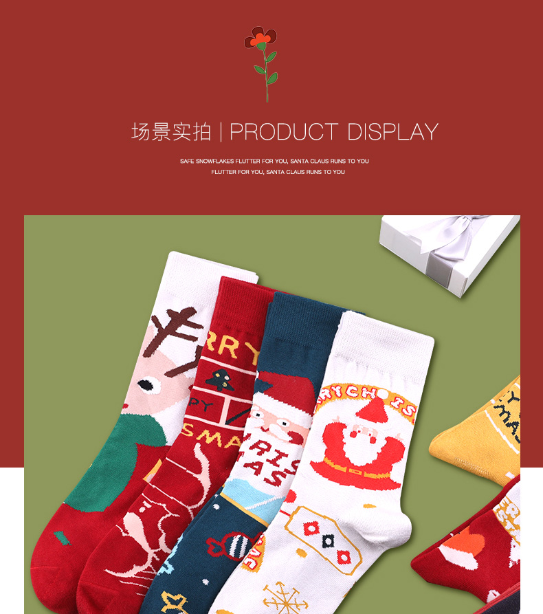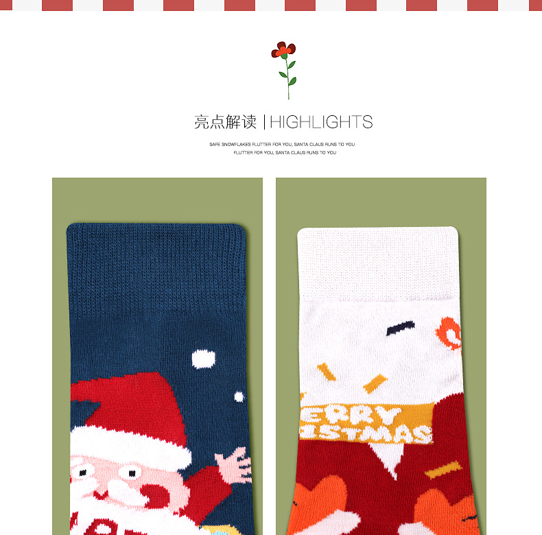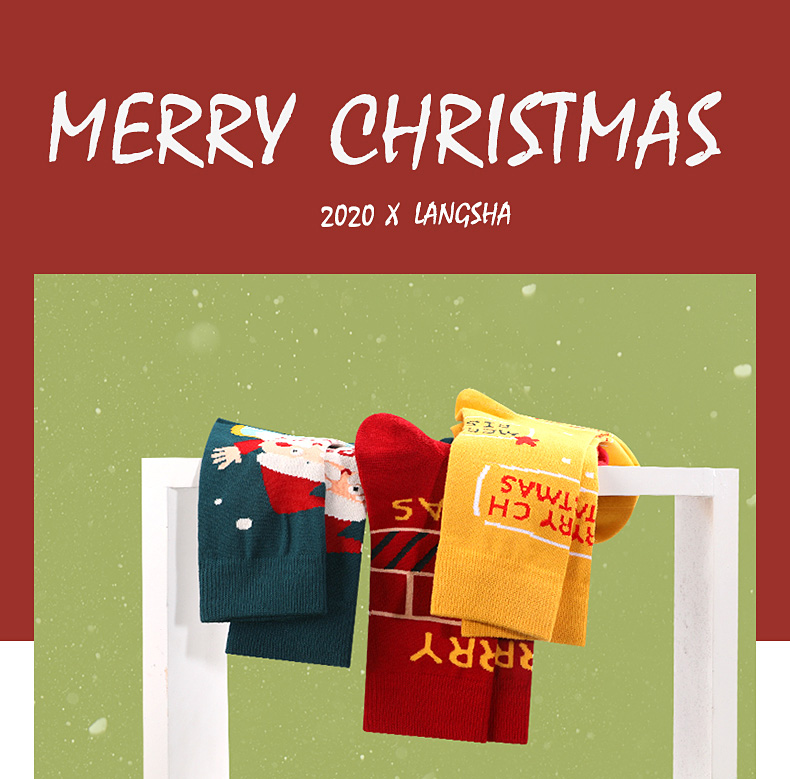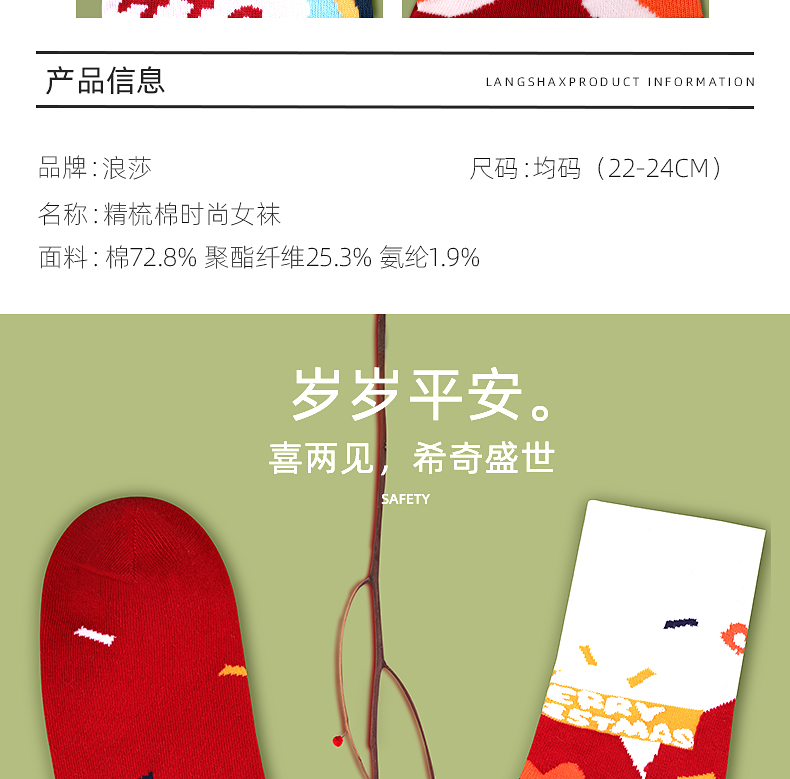 浪莎圣誕襪子女中筒襪秋冬季可愛本命年紅襪子圣誕節(jié)禮盒加厚棉襪