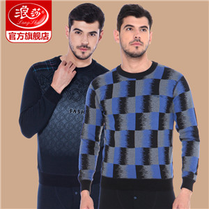 浪莎時尚加絨加厚保暖內衣套裝男士中年格子秋衣秋褲冬季打底防寒