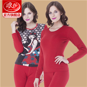 浪莎保暖內衣女士加厚加絨保暖衣冬天大紅本命年秋衣秋褲