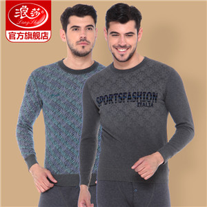 浪莎條紋個性保暖內衣男士加厚加絨中老年人爸爸冬季秋衣秋褲套裝