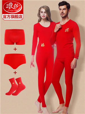 浪莎本命年紅色內衣內褲襪子結婚禮物屬牛秋衣秋褲男女士保暖套裝
