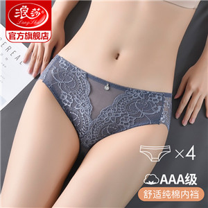 浪莎蕾絲內褲女士性惑春夏款純棉底襠性感無痕透氣鏤空三角短褲頭