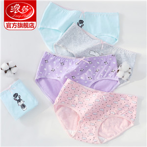 浪莎女士內褲女三角褲中腰春夏少女純棉面料透氣全棉日系女生褲衩