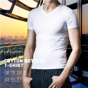 男士簡約純色透氣高彈彈力棉短袖V領(lǐng)T恤
